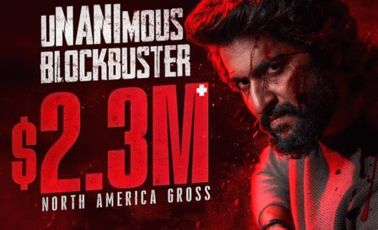 సైలేష్ కోలాను దర్శకత్వంలో నేచురల్ స్టార్ నాని నటించిన క్రైమ్ థ్రిల్లర్ 'హిట్ 3' మే 1న విడుదల అయ్యింది. తెలుగు, తమిళం, హిందీ, మలయాళం మరియు కన్నడ భాషలలో ఏకకాలంలో విడుదల అయ్యిన ఈ చిత్రం బాక్సాఫీస్ వద్ద సెన్సేషన్ ని సృష్టిస్తుంది. తాజాగా ఇప్పుడు ఈ A- రేటెడ్ క్రైమ్ డ్రామా ఒక ప్రధాన మైలురాయిని అధిగమించింది. ఈ చిత్రాన్ని ఓవర్సీస్ లో ప్రత్యంగిరా సినిమాస్ బ్యానర్ విడుదల చేస్తుంది. ఈ చిత్రం నార్త్ అమెరికన్ బాక్సాఫీస్ వద్ద ఇటీవలే 2 మిలియన్ క్లబ్లోకి ప్రవేశించింది. తాజాగా ఇప్పుడు మూవీ మేకర్స్ ఈ సినిమా నార్త్ అమెరికా ప్రీమియర్ గ్రాస్ $2.3M కి చేరుకున్నట్లు ప్రకటించారు. ఈ విషయాన్ని తెలియజేసేందుకు ప్రొడక్షన్ హౌస్ సోషల్ మీడియాలో సరికొత్త పోస్టర్ ని విడుదల చేసింది. హిట్ ఫిల్మ్ యొక్క సీక్వెల్ గా వచ్చిన ఈ చిత్రంలో నానికి జోడిగా శ్రీనిధి శెట్టి నటిస్తుంది. ఈ సినిమాలో రావు రమేష్, కోమలీ ప్రసాద్, సూర్య శ్రీనివాస్ మరియు ఇతరులు కీలక పాత్రల్లో నటించారు. సాంకేతిక బృందంలో ఎడిటర్గా కార్తీక శ్రీనివాస్ ఆర్, ప్రొడక్షన్ డిజైనర్ శ్రీ నాగేంద్ర తంగల, సను జాన్ వర్గీస్ కెమెరాను క్రాంక్ చేస్తున్నాడు. వాల్ పోస్టర్ సినిమా మరియు యూనానిమ్స్ ప్రొడక్షన్స్ కింద ప్రశాంతి టిపిర్నేని ఈ చిత్రాన్ని నిర్మించారు. ఈ యాక్షన్ థ్రిల్లర్ కి మిక్కీ జె మేయర్ సంగీతం అందిస్తున్నారు.