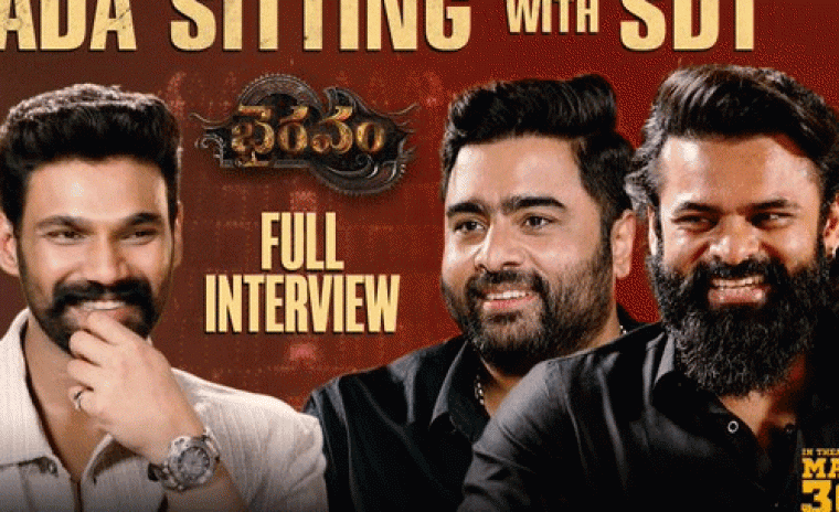 విజయ్ కనకమేడల దర్శకత్వంలో టాలీవుడ్ నటుడు బెల్లంకొండ సాయి శ్రీనివాస్ 'భైరవం' సినిమా చేస్తున్న సంగతి అందరికి తెలిసిందే. ఈ సినిమాలో బెల్లంకొండ శ్రీనివాస్తో పాటు మంచు మనోజ్ మరియు నారా రోహిత్ కూడా ముఖ్యమైన పాత్రల్లో నటించారు. ఈ ముగ్గురు నటీనటులు స్క్రీన్ను పంచుకునే అవకాశం అభిమానులలో మరియు సినీ ఔత్సాహికులలో విపరీతమైన ఉత్సాహాన్ని సృష్టించింది. ఈ సినిమాలో అతిధి శంకర్ మహిళా ప్రధాన పాత్రలో నటిస్తుంది. ఈ చిత్రం నుండి ఇప్పటివరకు విడుదలైన ప్రమోషనల్ కంటెంట్ మూవీ పై భారీ బజ్ ని క్రియేట్ చేసింది. మేకర్స్ ఈ సినిమాని భారీగా ప్రమోట్ చేస్తున్నారు. తాజాగా చిత్ర బృందం సరదా సిట్టింగ్ విత్ SDT అనే ఇంటర్వ్యూలో పాల్గొన్నారు. చిత్ర ప్రధాన నటులు మరియు సాయి దుర్గం తేజ్ ఈ ఇంటర్వ్యూలో పాల్గొన్నారు. ఈ ఫుల్ ఇంటర్వ్యూని విడుదల చేసినట్లు చిత్ర బృందం ప్రకటించింది. ఈ విషయాన్ని తెలియజేసేందుకు చిత్ర బృందం సోషల్ మీడియాలో సరికొత్త పోస్టర్ ని విడుదల చేసింది. ఈ సినిమాలో దివ్య పిళై, ఆనంది, ప్రముఖ దర్శకుడు సందీప్ రాజ్, అజయ్, శరత్, జయసుధ, సంపత్ రాజ్, గోపరాజు రమణ ముఖ్య పాత్రలలో కనిపించనున్నారు. పెన్ స్టూడియోస్కు చెందిన డాక్టర్ జయంతిలాల్ గదా ఈ చిత్రాన్ని సమర్పిస్తున్నారు. శ్రీ సత్యసాయి ఆర్ట్స్ బ్యానర్ పై ఈ సినిమాని నిర్మిస్తున్నారు. ఈ సినిమా మే 30న విడుదల కానుంది. ఈ చిత్రం తమిళ బ్లాక్బస్టర్ గరుడన్ యొక్క అధికారిక తెలుగు రీమేక్.