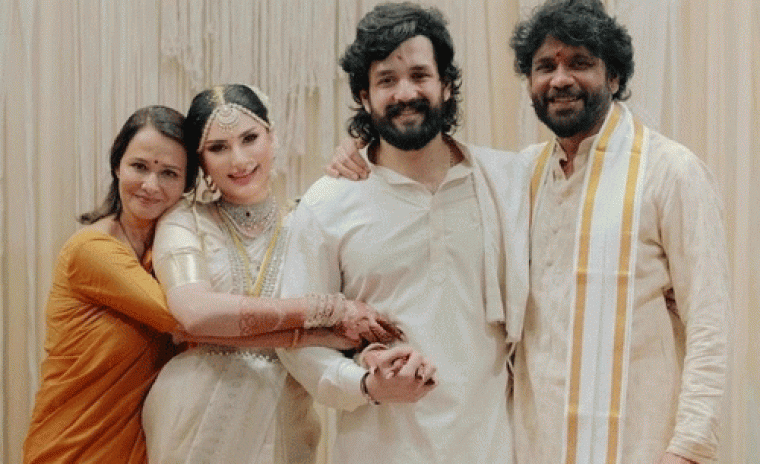 టాలీవుడ్ స్టార్ హీరో అఖిల్ అక్కినేని తన స్నేహితురాలు జైనాబ్ ని శనివారం తెల్లవారుజామున 3:35 గంటలకు తన నివాసంలో జరిగిన సన్నిహిత కార్యక్రమంలో వివాహం చేసుకున్నాడు. చిరస్మరణీయమైన సందర్భానికి చాలా మంది సన్నిహిత కుటుంబ సభ్యులు మరియు స్నేహితులు, కొంతమంది టాలీవుడ్ తారలతో సహా హాజరు అయ్యారు. అఖిల్ మరియు జైనాబ్ వివాహం యొక్క చిత్రాలు గత రాత్రి నుండి ఇంటర్నెట్లో భారీ స్ప్లాష్ చేస్తున్నాయి. సీనియర్ నటి మరియు అఖిల్ తల్లి అమల అక్కినేని సోషల్ మీడియాలో తన కొడుకు పెళ్లిపై హృదయపూర్వక నోట్ రాశారు. అపారమైన ఆనందంతో, నా ప్రియమైన కుమారుడు అఖిల్ తెల్లవారుజామున (3:35 AM) మా ఇంటిలో ఒక సన్నిహిత వేడుకలో తన ప్రియమైన జైనాబ్ను వివాహం చేసుకున్నారని నేను సంతోషిస్తున్నాను. అఖిల్ వివాహం నాగార్జున మరియు తనకి 'ఆ డ్రీమ్ కమ్ ట్రూ' అని పిలిచారు. ఈ కొత్త అధ్యాయాన్ని వారు కలిసి బయలుదేరినప్పుడు నేను మీ ఆశీర్వాదాలు మరియు శుభాకాంక్షలు కోరుకుంటాను అని పోస్ట్ చేసారు.