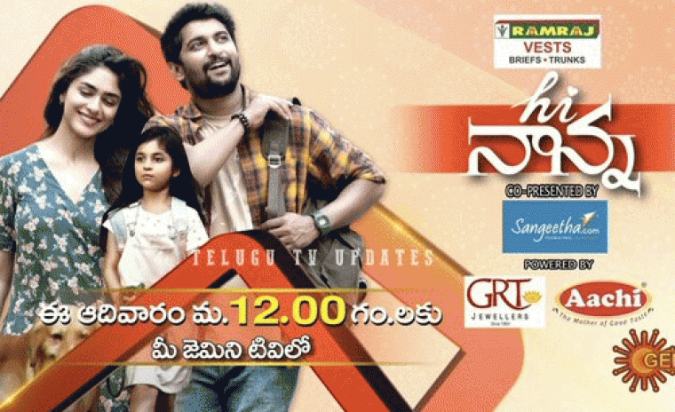 టాలీవుడ్ నటుడు నేచురల్ స్టార్ నాని యొక్క "హాయ్ నాన్న" చిత్రం ప్రేక్షకుల హృదయాలను కొల్లగొట్టడమే కాకుండా థియేట్రికల్ రన్లో 75 కోట్లకు పైగా వసూలు చేసి బాక్సాఫీస్ వద్ద గణనీయమైన ముద్ర వేసింది. ఈ చిత్రానికి శౌర్యువ్ దర్శకత్వం వహించారు. మృణాల్ ఠాకూర్ ఈ చిత్రంలో మహిళా ప్రధాన పాత్రలో నటించారు. ఈ చిత్రం ఇప్పుడు జెమినీ టీవీలో టెలివిజన్ ప్రీమియర్ను ప్రదర్శించడానికి సిద్ధమవుతోంది. ఫాదర్ డే సందర్భంగా జూన్ 15, 2025న మధ్యాహ్నం 12 గంటలకి స్మాల్ స్క్రీన్పై ఎంట్రీ ఇవ్వనుంది. జయరామ్, బేబీ కియారా ఖన్నా, అంగద్ బేడి, నాజర్, విరాజ్ అశ్విన్ మరియు ప్రియదర్శి ఈ సినిమాలో కీలక పాత్రలో నటించారు. అదనంగా, నటీమణులు నేహా శర్మ మరియు రితికా నాయక్ అతిధి పాత్రలు కథాంశానికి లోతును జోడించారు. వైరా ఎంటర్టైన్మెంట్స్ పై డా. విజయేందర్ రెడ్డి తీగల మరియు మోహన్ చెరుకూరి (సివిఎం) ఈ చిత్రాన్ని నిర్మించారు. హేషమ్ అబ్దుల్ వహాబ్ ఈ సినిమాకి సంగీతం అందించారు.