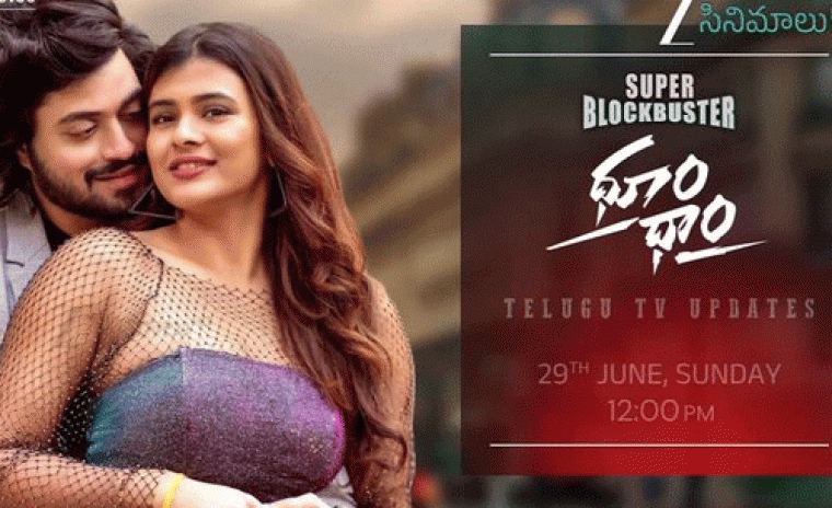 సాయి కిషోర్ మాచా దర్శకత్వం వహించిన 'ధూమ్ ధామ్' లో చెతన్ కృష్ణ మరియు హెబా పటేల్ ప్రధాన పాత్రలలో నటించారు. ఈ చిత్రం తెలుగు వినోదాత్మక నాటకం. ఈ కామెడీ డ్రామా యొక్క తెలుగు వెర్షన్ శాటిలైట్ రైట్స్ ని జీ తెలుగు మరియు జీ సినిమాలు ఛానల్ సొంతం చేసుకుంది. తాజాగా ఇప్పుడు ఈ సినిమా జీ సినిమాలు ఛానల్ లో జూన్ 29న మధ్యాహ్నం 12 గంటలకి స్మాల్ స్క్రీన్ పై ఎంట్రీ ఇవ్వటానికి సిద్ధంగా ఉన్నట్లు ఛానల్ ప్రకటించింది. సాయి కుమార్, వెన్నెలా కిషోర్, పృథ్వీరాజ్, గోపరాజు రమణ కీలక పాత్రలు పోషిస్తున్నారు. ఫ్రైడే ఫ్రేమ్ వర్క్స్ బ్యానర్ కింద ఎంఎస్ రామ్ కుమార్ నిర్మించిన ధూమ్ ధామ్ గోపి సుందర్ సంగీతం కలిగి ఉంది. ఈ చిత్రం OTT ప్లాట్ఫాం అమెజాన్ ప్రైమ్ వీడియో మరియు ఈటీవీ విన్ లో ప్రసారానికి అందుబాటులోకి ఉంది.