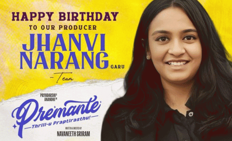 టాలీవుడ్ నటుడు ప్రియదర్శి ఫుల్ ఫారంలో ఉన్నాడు. ఇటీవలే నటుడు తన కొత్త చిత్రాన్ని 'ప్రేమంటే' ని ప్రకటించాడు. ఈ చిత్రం "థ్రిల్-యు ప్రాప్తిరస్తు" అనే చమత్కారమైన ట్యాగ్లైన్తో వస్తుంది, ఇది అందించడానికి వాగ్దానం చేసిన ఉత్తేజకరమైన సినిమాటిక్ అనుభవాన్ని సూచిస్తుంది. ఈ చిత్రానికి నవనీత్ శ్రీరామ్ దర్శకత్వం వహిస్తున్నారు. ఈ చిత్రంలో ఆనంది, సుమ కనకాల కీలక పాత్రలు పోషించారు. తాజాగా మూవీ మేకర్స్ ఈ సినిమా ప్రొడ్యూసర్ జాన్వీ నారంగ్ కి పుట్టినరోజు శుభాకాంక్షలు తెలియజేస్తూ స్పెషల్ పోస్టర్ ని విడుదల చేసారు. ప్రతిభావంతులైన తారాగణం మరియు సిబ్బందితో, విశ్వనాథ్ రెడ్డి, లియోన్ జేమ్స్ మరియు అన్వర్ అలీ వంటి ప్రఖ్యాత నిపుణుల నైపుణ్యాన్ని కలిగి ఉన్న ప్రేమంటే సాంకేతికంగా అభివృద్ధి చెందిన నిర్మాణంగా భావిస్తున్నారు. ఈ సినిమాని రానా దగ్గుబాటి సమర్పిస్తున్నారు. శ్రీ వెంకటేశ్వర సినిమాస్ ఎల్ఎల్పి (ఎస్విసిఎల్ఎల్పి) మరియు స్పిరిట్ మీడియా బ్యానర్లపై రానా దగ్గుబాటి సమర్పణలో సునీల్ మరియు భరత్ నారంగ్ మార్గదర్శకత్వంలో జాన్వీ నారంగ్ ఈ చిత్రాన్ని నిర్మిస్తున్నారు.