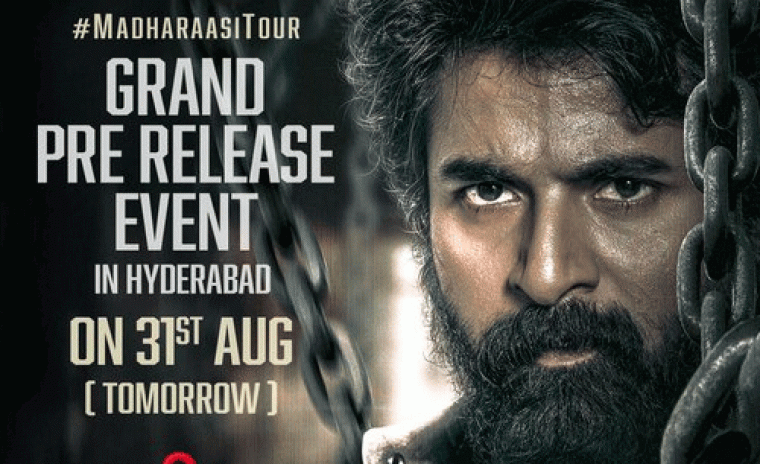 కోలీవుడ్ హీరో శివకార్తికేయన్ నటిస్తున్న రాబోయే హై-ఆక్టేన్ యాక్షన్ థ్రిల్లర్ 'మాధరాసి' సెప్టెంబర్ 5న విడుదలకి సిద్ధంగా ఉంది. AR మురుగాడాస్ దర్శకత్వం వహించిన ఈ చిత్రంలో శాండల్వుడ్ బ్యూటీ రుక్మిని వాసంత్ మహిళా ప్రధాన పాత్రలో నటించారు. ఈ సినిమా యొక్క ప్రమోషనల్ కంటెంట్ కి భారీ స్పందన లభించింది. తాజాగా ఇప్పుడు మూవీ మేకర్స్ ఈ సినిమా యొక్క గ్రాండ్ ప్రీ రిలీజ్ ఈవెంట్ ని ఆగష్టు 31న సాయంత్రం 6 గంటల నుండి హైదరాబాద్ లోని ట్రైడెంట్ హోటల్ లో నిర్వహిస్తున్నట్లు ప్రకటించారు. ఈ విషయాన్ని తెలియజేసేందుకు ప్రొడక్షన్ హౌస్ సోషల్ మీడియాలో సరికొత్త పోస్టర్ ని విడుదల చేసింది. విడీయట్ జమ్వాల్ ఈ చిత్రంలో విలన్ గా నటిస్తుండగా, బిజూ మీనన్ కీలక పాత్రలో నటిస్తున్నారు. ఎన్. శ్రీలక్ష్మి ప్రసాద్ శ్రీ లక్ష్మి సినిమాల బ్యానర్ కింద ఈ సినిమాని నిర్మించారు. అనిరుద్ రవిచందర్ ఈ సినిమాకి సంగీత స్వరకర్తగా ఉన్నారు.
