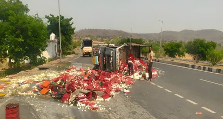 జాతీయ రహదారిపై వెళుతున్న కోడిగుడ్ల వ్యాన్ నేరడిగొండలోని కొరటికల్ వద్ద ఉన్న డౌనల్ ప్రాంతంలో మంగళవారం బోల్తా పడింది. ఆర్మూర్ నుంచి మహారాష్ట్రలోని సర్కనికి కోడిగుడ్లతో వెళుతున్న వ్యాన్ ఓ బైక్ను తప్పించే ప్రయత్నంలో అదుపుతప్పి బోల్తాపడినట్లు స్థానికులు తెలిపారు. దీంతో వ్యాన్ లోని కోడిగుడ్ల ట్రేలు రోడ్డుపై చిందరవందరగా పడిపోయాయి. వ్యాన్లోని కోడిగుడ్లు అన్ని పగిలిపోయాయని, ఇద్దరికి స్వల్పగాయలైనట్లు వెల్లడించారు
