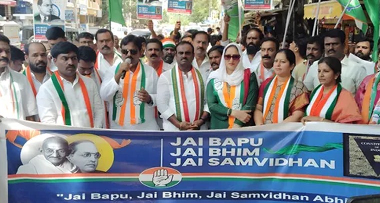 రాజ్యాంగ పరిరక్షణ కోసం చేపట్టిన జై బాపు జై భీమ్ జై సంవిధాన్ అభియాన్ కార్యక్రమంలో భాగంగా మంగళవారం కొంపల్లిలో కుత్బుల్లాపూర్ నియోజకవర్గం కాంగ్రెస్ పార్టీ ఇన్ ఛార్జ్ కోలన్ హన్మంత్ రెడ్డి ఆదేశాల మేరకు మాజీ ఎమ్మెల్యే కాంగ్రెస్ పార్టీ రాష్ట్ర నాయకులు పాదయాత్ర నిర్వహించారు. ఈ కార్యక్రమంలో కూన శ్రీశైలం గౌడ్, కుత్బుల్లాపూర్ కోఆర్డినేటర్ ఉష్మా షాకీర్, నర్సారెడ్డి భూపతిరెడ్డి, బైరి ప్రశాంత్ గౌడ్ పాల్గొన్నారు.