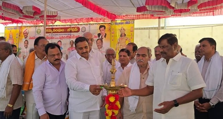 నిజామాబాద్ జిల్లా లోని బోధన్ లో నూతనంగా నిర్మించిన కమ్మసంఘం భవనం ప్రారంభోత్సవం కార్యక్రమంలో గౌరవ మాజీ మంత్రివర్యులు శ్రీ మండవ వెంకటేశ్వరరావు , గౌరవ మిర్యాలగూడ మాజీ ఎమ్మెల్యే శ్రీ నల్లమోతు భాస్కర్ రావు, కమ్మవారి సేవా సంఘాల సమాఖ్య ,తెలంగాణ గౌరవ అధ్యక్షులు శ్రీ సి వి రావు గారు,గౌరవ రాష్ట్ర హస్తకళల మాజీ చైర్మన్ శ్రీ అమర్ నాథ్ బాబు , గౌరవ బోధన్ కమ్మ సంఘం అధ్యక్షులు శ్రీ పల్లెంపాటి శివన్నారాయణ , గౌరవ కార్పొరేటర్ శ్రీ ఉప్పలపాటి శ్రీకాంత్ ,గౌరవ మాజీ కార్పొరేటర్ శ్రీ కొత్త రామారావు గారు, గౌరవ ఉదయ్ హైట్స్ అధినేత శ్రీ ముమ్మలనేని రాజశేఖర్ గారు మరియు కమ్మ సంఘం ప్రతినిధులతో కలిసి పాల్గొని బోధన్ కమ్మ సంఘం భవనం ను ప్రారంభించి మరియు తెలుగువారి ఆత్మగౌరవ ప్రతీక, విశ్వవిఖ్యాత, నటసార్వభౌమ, నటరత్న, పద్మ శ్రీ, గౌరవ మాజీ ముఖ్యమంత్రి వర్యులు , స్వర్గీయ డాక్టర్ శ్రీ నందమూరి తారక రామారావు గారి కాంస్య విగ్రహాన్ని ఆవిష్కరించిన కమ్మవారి సేవా సంఘాల సమాఖ్య ,తెలంగాణ అధ్యక్షులు గౌరవ PAC చైర్మన్ శ్రీ ఆరెకపూడి గాంధీ .