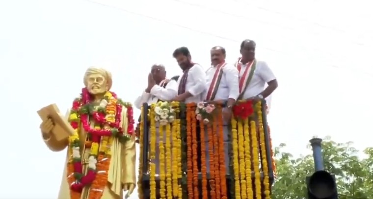 మహాత్మా జ్యోతిబా పూలే జయంతి సందర్భంగా HYD-అంబర్పేటలోని ఆ మహనీయుడి విగ్రహానికి CM రేవంత్ రెడ్డి పూలమాల వేసి నివాళులు అర్పించారు. అంతకుముందు మహాత్మా జ్యోతిరావు పూలే విగ్రహం ఏర్పాటు విషయంలో తెలంగాణ ప్రభుత్వం కీలక నిర్ణయం తీసుకుంది. హైదరాబాద్ నెక్లెస్ రోడ్డు ఐమాక్స్ సమీపంలో జ్యోతిరావు పూలే విగ్రహ ఏర్పాటుకు శుక్రవారం సీఎం రేవంత్ రెడ్డి స్థలాన్ని పరిశీలించారు. డిప్యూటీ సీఎం భట్టి విక్రమార్క, పీసీసీ చీఫ్ మహేశ్కుమార్ గౌడ్, ఎంపీ అనిల్ కుమార్ యాదవ్, పలువురు ఎమ్మెల్యేలు, జీహెచ్ఎంసీ మేయర్ విజయలక్ష్మి, మాజీ ఎంపీ అంజన్ కుమార్ యాదవ్, బీసీ సంఘాల నేతలు జాజుల శ్రీనివాస్గౌడ్, తదితరులతో కలిసి సీఎం స్థలాన్ని పరిశీలించారు.