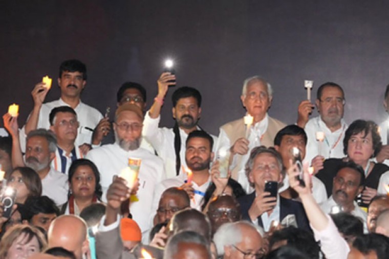 The delegates participated in the candlelight rally led by Telangana Chief Minister A. Revanth Reddy on Friday evening to condemn the terror attack.