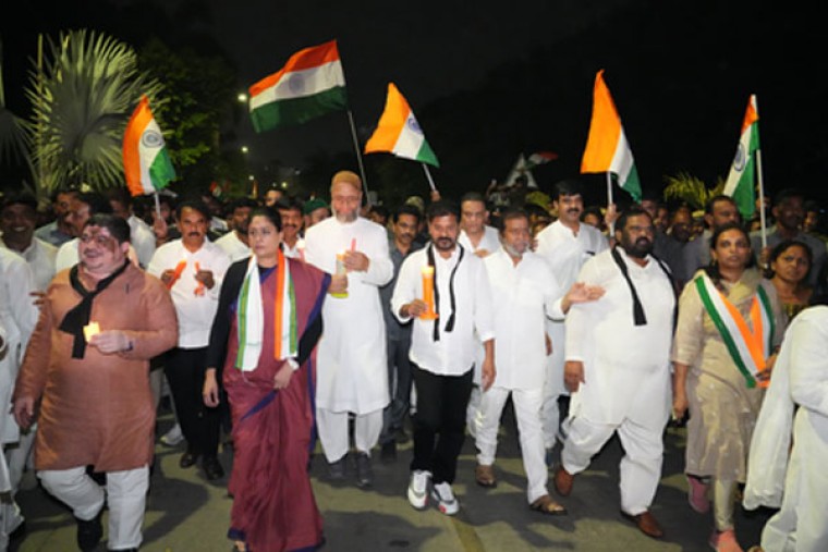 Hyderabad, April (IANS) Telangana Chief Minister A. Revanth Reddy on Friday led a candlelight rally to protest against the Pahalgam terror attack.