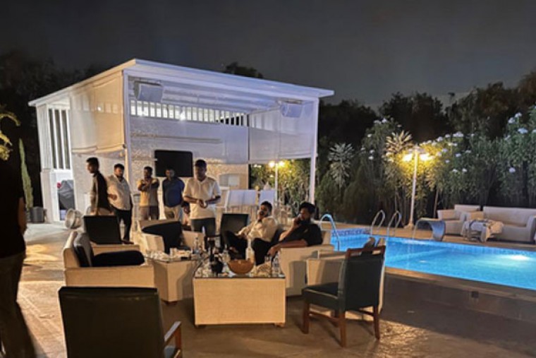 Large quantities of liquor, including beer, whisky, vodka and other premium brands, were also seized from the farmhouse.