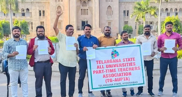 తెలంగాణ ఆల్ యూనివర్సిటీ పార్ట్ టైం లెక్చరర్లు అసోసియేషన్ రాష్ట్ర కార్యవర్గం సోమవారం ఉస్మానియా యూనివర్సిటీ ఆర్ట్స్ కళాశాల దగ్గర మీడియా సమావేశం నిర్వహించారు. ఈ సందర్భంగా అసోసియేషన్ రాష్ట్ర ప్రధాన కార్యదర్శి ఎర్రం నాగేంద్రం మాట్లాడుతూ 2023 సాధారణ ఎన్నికల సందర్భంగా కాంగ్రెస్ పార్టీ పార్ట్ టైం లెక్చరర్లకు ఇచ్చిన హామీ అయిన 50,000 రూపాయలు 12 నెలలు ఇవ్వాలని కోరారు.