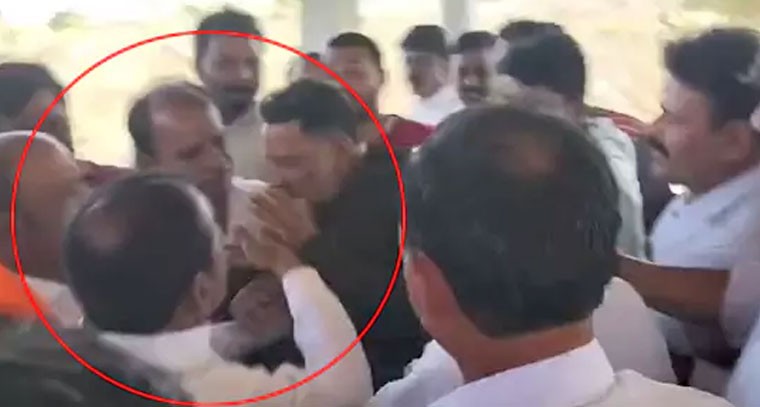 భాజపా ఎంపీ ఈటల రాజేందర్ ఓ స్థిరాస్తి దళారిపై చేయి చేసుకున్నారు. మేడ్చల్ జిల్లా పోచారం మున్సిపాలిటీ పరిధిలోని ఈ ఘటన చోటుచేసుకుంది. మున్సిపాలిటీలోని ఏకశిలానగర్లో మంగళవారం ఈటల పర్యటించారు. బాధితుల ఫిర్యాదుతో స్థిరాస్తి దళారిపై ఈటల ఆగ్రహం వ్యక్తం చేశారు. ఈ క్రమంలో ఆయనపై చేయిచేసుకున్నారు. ఇంటి స్థలాల యజమానులను ఇబ్బంది పెడుతున్నారని ఎంపీ మండిపడ్డారు. ఈ సందర్భంగా ఈటల మాట్లాడుతూ.. ‘‘పేదలు కొనుక్కున్న జాగాలకు భాజపా అండగా ఉంటుంది. కొందరు అధికారులు బ్రోకర్లకు కొమ్ముకాస్తున్నారు. భూములు కొనుక్కున్న పేదల సమస్యలపై కలెక్టర్, సీపీతో మాట్లాడాను. కొందరు దొంగ పత్రాలతో పేదల భూములను లాక్కుంటున్నారు. బ్రోకర్లకు సహకరించే అధికారులపై చర్యలు తీసుకోవాలి. దళారులతో పోలీసులు, అధికారులు కుమ్మక్కవుతున్నారు. కూల్చివేతలు తప్ప.. పేదల కన్నీళ్లు పట్టించుకోవడం లేదు’’ అని ఆగ్రహం వ్యక్తం చేశారు.