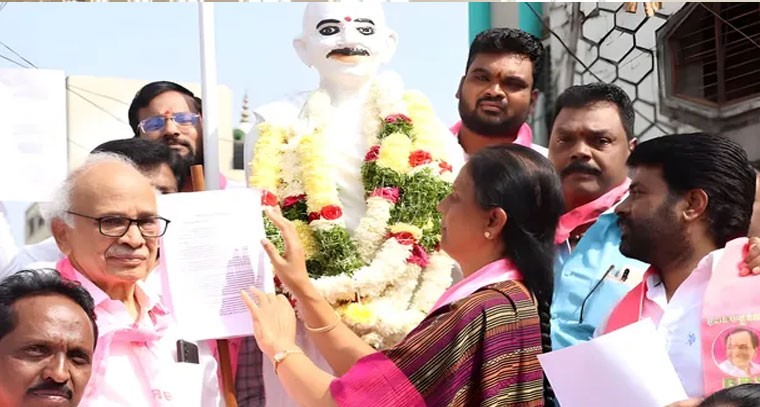 మహాత్మా గాంధీ వర్ధంతి సందర్భంగా గురువారం సరూర్ నగర్ లో ఆయన విగ్రహానికి పూలమాలతో నివాళులు అర్పించి ప్రభుత్వం ఇచ్చిన 420 హామీల వినతి పత్రాన్ని మహాత్మా గాంధీ విగ్రహానికి ఎమ్మెల్యే సబితా ఇంద్రారెడ్డి అందజేశారు. కాంగ్రెస్ పార్టీ అధికారంలోకి వచ్చి 14 నెలలు(420) రోజులు గడుస్తున్నా 420 హామీలు ప్రజలకు ఇచ్చిన ఏ ఒక్క హామీ కూడా సరిగ్గా నెరవేర్చలేదని అన్నారు.కాంగ్రెస్ ప్రభుత్వానికి వ్యతిరేకంగా వినతి పత్రాల నిరసన కార్యక్రమం నిర్వహించారు. ఈ సందర్భంగా బీఆర్ఎస్ ఎమ్మెల్యేలు, మాజీ ఎమ్మెల్యేలు, నాయకులు మాట్లాడుతూ అధికారం కోసం అడ్డగోలు హామీలిచ్చి కాంగ్రెస్ అధికారం చేపట్టిందని.. తీరా గెలిచాక ఇచ్చిన హామీలను తుంగలో తొక్కిందని విమర్శించారు. తులం బంగారం, నాలుగు వేల పెన్షన్, 2లక్షల ఉద్యోగాలు, రైతు భరోసా రూ.15 వేలు వంటి అనేక హామీలను విస్మరించిందని మండిపడ్డారు