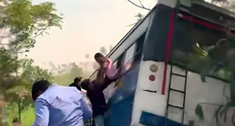 రాజన్న సిరిసిల్ల జిల్లా గంభీరావుపేట మండలం గోరింటాల గ్రామ శివారులో శుక్రవారం అదుపుతప్పి ఆర్టీసీ బస్సు పంట పొలంలోకి దూసుకెళ్లింది. ప్రయాణికులు తెలిపిన వివరాల ప్రకారం.. కామారెడ్డి డిపోకు చెందిన ఆర్టీసీ బస్సు సిరిసిల్లకు వెళ్తున్న క్రమంలో గోరంటాల గ్రామ బ్రిడ్జి మూలం వద్దకు రాగానే ఆర్టీసీ బస్సు ఎదురుగా ఉన్న పొలంలోకి దూసుకెళ్లింది. పలువురికి గాయాలైయ్యాయి.