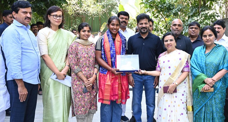 తెలంగాణ రాష్ట్రానికి గర్వకారణంగా నిలిచిన యువ క్రికెటర్ గొంగడి త్రిష ను ముఖ్యమంత్రి రేవంత్ రెడ్డి ప్రత్యేకంగా అభినందించారు. అండర్-19 మహిళల వరల్డ్ కప్లో తన అద్భుత ప్రదర్శనతో దేశాన్ని గర్వపడేలా చేసిన త్రిషను సీఎం తన నివాసంలో మర్యాదపూర్వకంగా కలుసుకుని శుభాకాంక్షలు తెలియజేశారు.జూబ్లీహిల్స్లోని సీఎం క్యాంప్ కార్యాలయంలో జరిగిన ఈ కార్యక్రమంలో ముఖ్యమంత్రి త్రిష ప్రతిభను కొనియాడుతూ కోటి రూపాయల నజరానా ప్రకటించారు. "నీ ప్రతిభ తెలంగాణ గర్వించదగినది. భవిష్యత్తులో భారత జట్టును మరింతగా గెలిపించాలి" అంటూ ఆమెకు ప్రోత్సాహం అందించారు. తెలంగాణ నుంచి అంతర్జాతీయ స్థాయిలో మహిళా క్రికెటర్లు ఎదగడానికి ప్రభుత్వం అన్ని విధాలుగా తోడ్పాటు అందిస్తుందని ఆయన హామీ ఇచ్చారు.