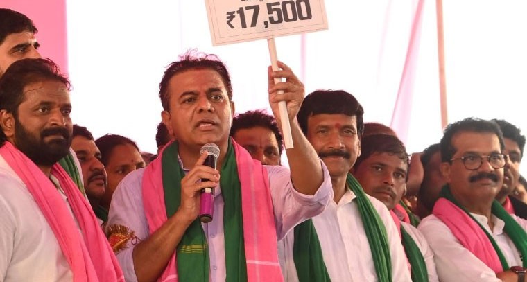 కొడంగల్ ఎమ్మెల్యే పదవికి సీఎం రేవంత్రెడ్డి రాజీనామా చేయాలని బీఆర్ఎస్ వర్కింగ్ ప్రెసిడెంట్ల కల్వకుంట్ల తారక రామారావు డిమాండ్ చేశారు. నారాయణపేట జిల్లా కోస్గిలో నిర్వహించిన బీఆర్ఎస్ రైతు నిరసన దీక్షలో కేటీఆర్ పాల్గొన్నారు. ఈ సందర్భంగా లగచర్ల, రోటిబండతండా, హకీమ్పేట్, పోలేపల్లి, పులిచెర్లకుంటతండా రైతులను కేటీఆర్ కలిశారు. అంతకు ముందు కొడంగల్ నియోజకవర్గం బొంరాస్పేట మండలం తున్కిమెట్ల వద్ద బీఆర్ఎస్ శ్రేణులు కేటీఆర్కు ఘన స్వాగతం పలికాయి. రైతు దీక్షలో కేటీఆర్ మాట్లాడుతూ.. రేవంత్రెడ్డి సర్కారు తెలంగాణలోని 25శాతం రైతులకు రుణమాఫీ ఇంకా జరుగలేదన్నారు. బీఆర్ఎస్ ప్రభుత్వ హయాంలో రూ.73వేల కోట్లు రైతుల ఖాతాల్లో జమ చేశామన్నారు. రైతుల సంక్షేమానికి బీఆర్ఎస్ ప్రభుత్వం ఎంతో కృషి చేసిందన్నారు.ప్రస్తుత కాంగ్రెస్ ప్రభుత్వం ఒక్కొక్కరికి రూ.17,500 బాకీ ఉందన్నారు. ఈ మొత్తం త్వరలోనే చెల్లించేలా చూస్తామని కేటీఆర్ పేర్కొన్నారు. కొడంగల్లో ఉప ఎన్నిక వస్తే బీఆర్ఎస్ అభ్యర్థి నరేందర్రెడ్డి గెలుపు ఖాయమన్నారు. ఎన్నికలు ఎప్పుడు వచ్చినా విజయం తథ్యమని దీమా వ్యక్తం చేశారు. కొడంగల్లో ఉప ఎన్నిక వస్తే రేవంత్ను ఓడిద్దామని ప్రజలు చూస్తున్నారన్నారు. రేవంత్రెడ్డి కొడంగల్ ఎమ్మెల్యే పదవికి రాజీనామా చేయాల్సిందేనన్నారు. ఉప ఎన్నికలు వస్తే తాము ప్రచారం చేయబోమన్నారు. బీఆర్ఎస్ అభ్యర్థి పట్నం నరేందర్ రెడ్డికి 50వేల ఓట్ల మెజారిటీ తక్కువగా వచ్చినా, తాను రాజకీయ సన్యాసం చేసేందుకు సిద్ధంగా ఉన్నాననన్నారు. తాను రైతు నిరసన దీక్షకు వస్తున్నట్లుగా లేదని.. కొడంగల్లో ఉప ఎన్నిక వచ్చి రేవంత్ రెడ్డి ఓడిపోయి పట్నం నరేందర్ రెడ్డి గెలిచాక చేసే విజయోత్సవ ర్యాలీకి వచ్చనా అన్నట్లుగా ఉందన్నారు. రేవంత్కు దమ్ముంటే రాజీనామా చేసి ఉప ఎన్నికకు రావాలని సవాల్ విసిరారు.