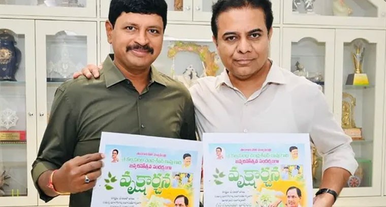 ఈనెల 17 మాజీ సీఎం, బీఆర్ఎస్ అధినేత కేసీఆర్ పుట్టిన రోజు సందర్భంగా బీఆర్ఎస్ వృక్షార్చన కార్యక్రమాన్ని ప్రారంభించనుంది. ప్రతి ఒక్కరూ మూడు మొక్కలు నాటాలనే నినాదంతో మాజీ ఎంపీ జోగినపల్లి సంతోష్ కుమార్ ఆధ్వర్యంలో ఈ కార్యక్రమాన్ని నిర్వహించనున్నారు.ఈ కార్యక్రమానికి సంబంధించిన పోస్టర్ను కేటీఆర్, ఎమ్మెల్సీ పోచంపల్లి శ్రీనివాస్ రెడ్డి, బీఆర్ఎస్ ఆఫీస్ సెక్రటరీ, మాజీ రాజ్యసభ సభ్యుడు రావుల చంద్రశేఖర్ రెడ్డి, మాజీ ఎమ్మెల్యేలు పెద్ది సుదర్శన్ రెడ్డి, బీగాల గణేశ్, శంకర్ నాయక్, గ్రీన్ ఇండియా ఛాలెంజ్ కో-ఫౌండర్ రాఘవ ఆవిష్కరించారు.ఈ సందర్భంగా కేటీఆర్ మాట్లాడుతూ ప్రతి ఒక్కరూ మొక్కలు నాటి, వాటిని సంరక్షించే బాధ్యత తీసుకోవడమే కేసీఆర్కు మనం ఇచ్చే పుట్టిన రోజు కానుక అన్నారు. వృక్షార్చన కార్యక్రమం తీసుకున్న పార్టీ జనరల్ సెక్రటరీ, మాజీ ఎంపీ సంతోష్ కుమార్ను కేటీఆర్ అభినందించారు