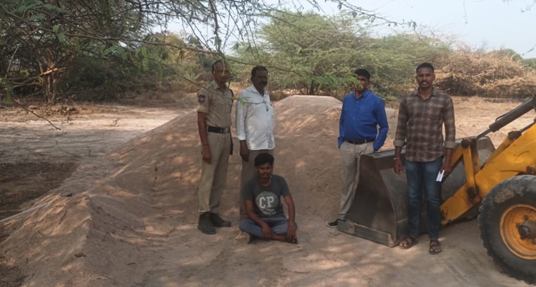 బెజ్జంకి పోలీస్ స్టేషన్ పరిధిలోని గాగిల్లాపూర్ గ్రామ శివారులో అక్రమంగా 40 టన్నుల ఇసుకను డంపు చేశారని సమాచారంతో సోమవారం సాయంత్రం సిద్దిపేట జిల్లా టాస్క్ఫోర్స్ పోలీసులు, బెజ్జంకి పోలీసులు సంయుక్తంగా పట్టుకున్నారు. టాస్క్ ఫోర్స్ పోలీసులు, బెజ్జంకి పోలీసుల కథనం మేరకు వివరాలు ఇలా ఉన్నాయి. గాగిల్లాపూర్ గ్రామ శివారులో ఏపీ 23 am 33 14 నెంబర్ గల జెసిబి తో లింగారెడ్డి పల్లె గ్రామం సిద్దిపేట మండలం కు చెందిన జెసిపి డ్రైవర్ రాజేష్, బెజ్జంకి మండలం గూడెం గ్రామానికి చెందిన జెసిపి యజమాని గూడెం శ్రీను లు ఇద్దరు కలిసి ఎలాంటి ప్రభుత్వ అనుమతి లేకుండా ఇసుక డంపు చేస్తున్నార ని పక్క సమాచారంతో సిద్దిపేట జిల్లా టాస్క్ ఫోర్సు పోలీసులు, బెజ్జంకి పోలీసులు పట్టుకున్నారు.