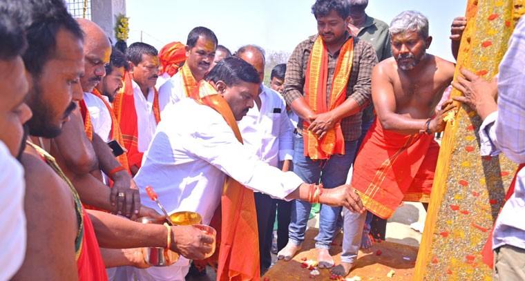 తెల్లాపూర్ : తెల్లాపూర్ మున్సిపల్ పరిధిలోని ఉస్మాన్ నగర్ లో నూతనంగా నిర్మించిన శ్రీశ్రీశ్రీ మల్లన్న స్వామి, శివాలయం దేవాలయాల్లో ఏర్పాటు చేసిన విగ్రహ ప్రతిష్టాపనల కార్యక్రమంలో ముఖ్య అతిథిగా పాల్గొని ప్రత్యేక పూజలు నిర్వహించిన పటాన్చెరు శాసన సభ్యులు గూడెం మహిపాల్ రెడ్డి. అనంతరం తెల్లాపూర్ లో నూతనంగా నిర్మించిన బీరప్ప, మల్లన్న స్వామి దేవాలయాల్లో నిర్వహించిన విగ్రహ ప్రతిష్టాపన కార్యక్రమంలో పాల్గొన్నారు. ఈ సందర్భంగా ఏర్పాటు చేసిన సమావేశాల్లో ఆయన మాట్లాడుతూ.. ప్రతి ఒక్కరిలో దైవభక్తిని పెంపొందించేందుకు నూతన దేవాలయాల నిర్మాణం ఎంతో ఆవశ్యకమని అన్నారు. నియోజకవర్గం వ్యాప్తంగా ప్రతి గ్రామంలో దేవాలయాల నిర్మాణాలకు సొంత నిధులు విరాళంగా అందించామని తెలిపారు. దేవాలయాలతో పాటు మసీదులు, చర్చిలను సైతం నిర్మించామని గుర్తు చేశారు. భవిష్యత్తులోనూ దేవాలయాల నిర్మాణాలు సంపూర్ణ సహకార అందిస్తామని తెలిపారు. అనంతరం ఆలయ కమిటీ నిర్వాహకులు ఎమ్మెల్యే జిఎంఆర్ ను ఘనంగా సన్మానించారు. ఈ కార్యక్రమాల్లో సీనియర్ నాయకులు సోమిరెడ్డి, ఉమేష్, రవీందర్ రెడ్డి, పిఎసిఎస్ చైర్మన్ బుచ్చి రెడ్డి, మల్లారెడ్డి, రామ్మోహన్ రెడ్డి, తాజా మాజీ కౌన్సెలర్లు, కో ఆప్షన్ సభ్యులు, సీనియర్ నాయకులు, కార్యకర్తలు పాల్గొన్నారు.