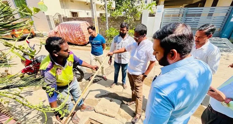కొత్తపేట డివిజన్ సత్యనగర్ కాలనీలో డ్రైనేజీ మురుగు నీటి సమస్యలు తలెత్తకుండా చర్యలు చేపట్టాలని కార్పొరేటర్ పవన్ కుమార్ జలమండలి అధికారులకు సూచించారు. సత్యనగర్ కాలనీ అసోసియేషన్ కమ్యూనిటీ హాల్ లైన్లో డ్రైనేజీ మ్యాన్ హాల్స్ ధ్వంసమై మురుగునీరు తాగునీటిలో కలుస్తుందని స్థానికుల ఫిర్యాదు మేరకు మంగళవారం ఆయన జలమండలి అధికారులతో కలిసి పరిశీలించారు. మ్యాన్ హాల్స్ మరమ్మతు చేసి డ్రైనేజీ మురుగు నీటి సమస్య తలెత్తకుండా చర్యలు చేపట్టాలని అధికారులను కోరారు.
