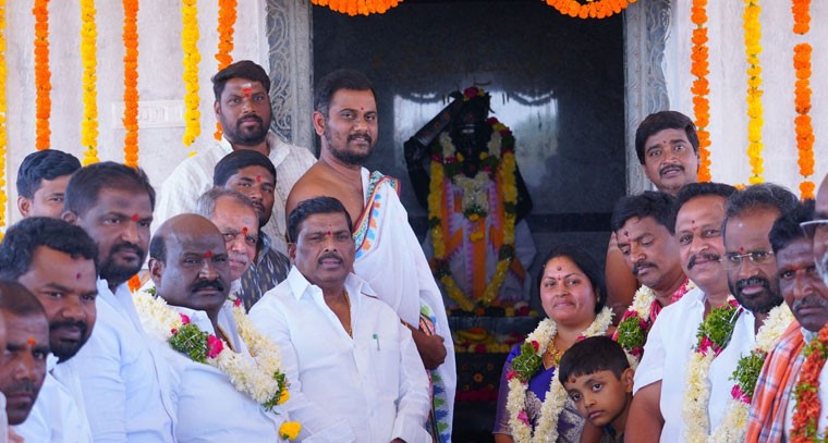 సంగారెడ్డి జిల్లా పటాన్చెరు నియోజకవర్గం తెల్లాపూర్ మున్సిపల్ పరిధిలోని ముత్తంగి గ్రామంలో నూతనంగా నిర్మించిన శ్రీశ్రీశ్రీ అక్క మహంకాళి సహిత కామారతి బీరప్ప విగ్రహ ప్రతిష్టాపన కార్యక్రమంలో ముఖ్య అతిథిగా పాల్గొని, ప్రత్యేక పూజలు నిర్వహించిన పటాన్చెరు శాసన సభ్యులు శ్రీ గూడెం మహిపాల్ రెడ్డి గారు. స్వామి వారి కృపతో ప్రజలందరూ సుఖసంతోషాలతో ఉండాలని కోరుకున్నట్లు తెలిపారు. ఆలయం అభివృద్ధికి సంపూర్ణ సహకారం అందిస్తామని తెలిపారు. హాజరైన మాజీ వైస్ ఎంపీపీ స్వప్న శ్రీనివాస్, మార్కెట్ కమిటీ మాజీ చైర్మన్ విజయ్ కుమార్, మాజీ సర్పంచ్ ఉపేందర్, ఆత్మ కమిటీ మాజీ చైర్మన్ కుమార్ గౌడ్, లింగారెడ్డి, మెరాజ్ ఖాన్, సందీప్, రామకృష్ణ, ఆలయ కమిటీ సభ్యులు.