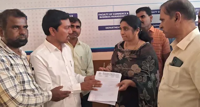 నార్కెట్పల్లి మహాత్మా గాంధీ యూనివర్సిటీ వైస్ ఛాన్స్లర్ అల్తాఫ్ హుస్సేన్ కు తెలంగాణ లెక్చరర్ ఫోరం రాష్ట్ర ఉపాధ్యక్షుడు సైదులు ఆధ్వర్యంలో ప్రవేట్ యాజమాన్యాలు ఫీజు రీయింబర్స్మెంట్ సకాలంలో రాక ప్రైవేట్ లెక్చరర్స్ కి జీతాలు ఇవ్వలేక పోతున్నమని వైస్ ఛాన్స్లర్ కి వినతి పత్రం మంగళవారం అందజేశారు. ప్రభుత్వం సకాలంలో రిలీజ్ చేయకపోతే రేపు జరగబోయే ఎగ్జామ్స్ అన్నింటికీ హాజరు కాకుండా నిరసన వ్యక్తం చేస్తామని తెలియజేశారు.