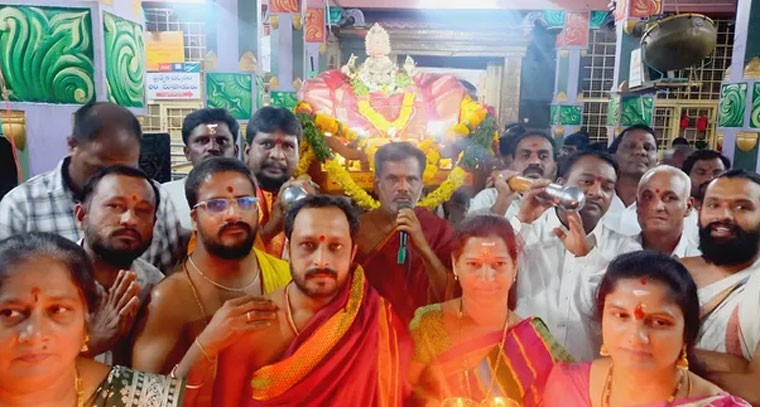 మెదక్ జిల్లా పాపన్నపేట మండల పరిధిలోని నాగసానుపల్లి గ్రామంలోని ప్రముఖ పుణ్యక్షేత్రం శ్రీ ఏడుపాయల మన దుర్గా భవాని అమ్మవారి ఆలయంలో శనివారం సాయంత్రం పౌర్ణమిని పురస్కరించుకొని అమ్మవారికి ప్రత్యేక పూజలు నిర్వహించి, పల్లకి సేవ నిర్వహించారు. ఈ కార్యక్రమంలో ఆలయ నిర్వహకులు, గ్రామస్తులు, భక్తులు, తదితరులు పాల్గొన్నారు. ఏడుపాయల వన దుర్గ భవాని ఆలయంలో శనివారం హనుమాన్ జయంతిని పురస్కరించుకొని ఏడుపాయల మంజీరానదీ తీరాన వున్న ఆంజనేయస్వామికి సింధూరపూజ, హారతి నిర్వహించారు. ఈ కార్యక్రమంలో స్థానిక భక్తులు, తదితరులు పాల్గొన్నారు..