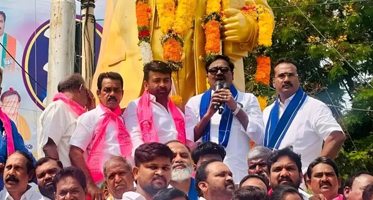 రాజ్యంగ నిర్మాత బీఆర్ అంబేద్కర్ జయంతి సందర్బంగా సోమవారం ఖమ్మం జడ్పీ సెంటర్ నందు అంబేద్కర్ కాంస్య విగ్రహానికి మాజీ మంత్రి పువ్వాడ అజయ్ కుమార్ పూలమాల వేసి నివాళులర్పించారు. ఆయన రాజ్యాంగంలో పొందుపరిచిన ఆర్టికల్ 3 ద్వారానే తెలంగాణ ఏర్పాటు సాధ్యమైందని పునరుద్ఘాటించారు. ఆయన ఆశయాలు సదా ఆచరణీయమైనవని అన్నారు. అంబేద్కర్ ఆశయ సాధనకు కృషి చేద్దామని తెలిపారు. బీఆర్ఎస్ నగర అధ్యక్షుడు పగడాల నాగరాజు ఉన్నారు.