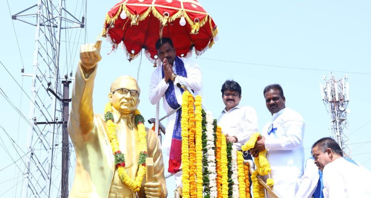 డా. బిఆర్ అంబేద్కర్ గారి జయంతిని పురస్కరించుకొని భువనగిరి పట్టణంలోని వినాయక చౌరస్తాలో డాక్టర్ బాబా సాహెబ్ అంబేద్కర్ గారి విగ్రహానికి పూలమాలవేసి ప్రభుత్వ విప్,ఆలేరు ఎమ్మెల్యే శ్రీ బీర్ల అయిలయ్య గారు ఘనంగా నివాళులర్పించారు.అనంతరం భువనగిరి పట్టణంలోని హైదరాబాద్ చౌరాస్తాలో అంబెడ్కర్ జయంతి సందర్భంగా నిర్వహిస్తున్న ర్యాలీని ముఖ్యఅతిథిగా హాజరై బీఆర్ అంబేద్కర్ చిత్రపటానికి దండ వేసి నివాళులర్పించి జెండా ఊపి ప్రారంభించారు.ఈ సందర్భంగా ఎమ్మెల్యే బీర్ల అయిలయ్య గారు మాట్లాడుతూ.ఆర్థికవేత్త రాజా నీతిజ్ఞుడు భారత రాజ్యాంగ రూపకర్త మహానీయుడు డాక్టర్ బి.ఆర్ అంబేద్కర్ గారి విగ్రహానికి భువనగిరి పట్టణంలో పూలమాలవేసి నివాళులర్పించడం చాలా సంతోషకరంగా ఉందన్నారు.యావత్ భారత్ మొత్తం రాజ్యాంగ రూపకర్త డాక్టర్ బి.ఆర్. అంబేద్కర్ గారి ఆశయాలను సాధించాలని ఈ సందర్భంగా కోరుకున్నారు.