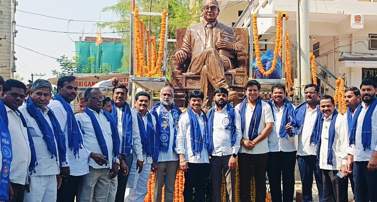 ఈ రోజు భారత రాజ్యాంగ నిర్మాత భారతరత్న *డాక్టర్ ఆర్ అంబేద్కర్ గారి* 134వ జయంతి సందర్భంగా నిజాంపేట్ మున్సిపల్ కార్పొరేషన్ గౌరవ సీనియర్ నాయకులు కాసాని వీరేష్ ముదిరాజ్, మాజీ డిప్యూటీ మేయర్ ధనరాజ్ యాదవ్ గారు, ఎన్ఎంసీ బిఆర్ఎస్ పార్టీ అధ్యక్షుడు రంగరాయ ప్రసాద్ గారు, మాజీ గౌరవ కార్పొరేటర్లు మేకల వెంకటేష్, కాసాని సుధాకర్, గాజుల సుజాత, బొర్రా దేవి చందు ముదిరాజ్, బాలాజీ నాయక్, మాజీ కో ఆప్షన్ సభ్యులు సయ్యద్ సలీం,జ్యోతి సతీష్, దళిత సంఘాల నాయకులతో కలిసి నిజాంపేట్, రాజీవ్ గాంధీ నగర్, సాయి నగర్, లో డా.బి.ఆర్ అంబేద్కర్ విగ్రహానికి పూలమాలలు వేసి ఘనంగా జయంతి నివాళులర్పించారు. ఈ సందర్భంగా వారు మాట్లాడుతూ భారతదేశ సమగ్ర సామాజిక స్వరూపాన్ని అర్థం చేసుకొని రాజ్యాంగ రచన చేసి,భావి భారత తరాలకు దిశానిర్దేశం చూపిన దార్శనికుడు భారత రాజ్యాంగ శిల్పిగా, ప్రజాస్వామ్య పరిరక్షకునిగా, సంఘసంస్కర్తగా, మహామేధావిగా, భారతరత్న బాబాసాహెబ్ డా.బి.ఆర్.అంబేద్కర్ గారు అని అన్నారు. ఈ కార్యక్రమంలో బీఆర్ఎస్ డివిజన్ అధ్యక్షులు మరియు అనుబంధ కమిటీ సభ్యులు, సీనియర్ నాయకులు, యువ నాయకులు, కార్యకర్తలు ప్రజాప్రతినిధులు, ఇతర ముఖ్యులు తదితరులు పాల్గొన్నారు.