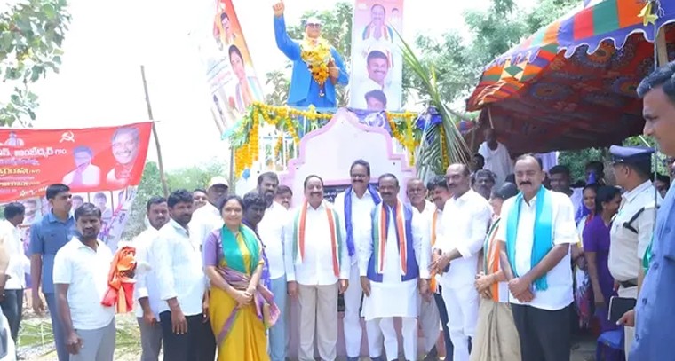 అంబేద్కర్ జయంతి సందర్భంగా రఘునాథపాలెం మండలం ఈర్లపూడిలో ఏర్పాటు చేసిన అంబేద్కర్ విగ్రహాన్ని సోమవారం మంత్రి తుమ్మల నాగేశ్వరరావు ఆవిష్కరించారు. అనంతరం జై భీమ్, జైబాపు, జై సంవిధాన్ ర్యాలీలో పాల్గొని మాట్లాడారు. కేంద్రంలోని బీజేపీ ప్రభుత్వం ఆప్రజాస్వామిక విధానాలు అవలంబిస్తూ ప్రజల హక్కులకు భంగం కలిగిస్తోందని అన్నారు. అంబేద్కర్ జీవితం సమకాలిక సమాజానికి, ముఖ్యంగా యువతరానికి స్ఫూర్తిదాయకమని పేర్కొన్నారు