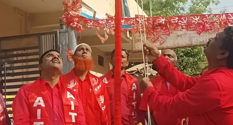 భారత కమ్యూనిస్టు పార్టీ సిపిఐ ఆధ్వర్యంలో 139వ మేడే సందర్భంగా నిజామాబాద్ జిల్లా కేంద్రంలోని అంబేద్కర్ కాలనీలో గల హమాలి యూనియన్ కార్యాలయం ముందు సిపిఐ జెండాను సిపిఐ జిల్లా కార్యదర్శి పి. సుధాకర్ జెండాను ఎగరవేసిన అనంతరం మాట్లాడుతూ కేంద్ర ప్రభుత్వం కార్మిక వ్యతిరేక విధానాలకు పాల్పడుతూ భారతదేశానికి స్వాతంత్రం రాకముందు స్వాతంత్రం వచ్చిన తర్వాత కార్మికులు పోరాడి తెచ్చుకున్న కార్మిక చట్టాలను రద్దు చేయడం అంటే కార్పొరేట్ శక్తులకు ఊడిగం చేస్తున్నట్లు స్పష్టంగా అర్థమవుతుంది అని అన్నారు.