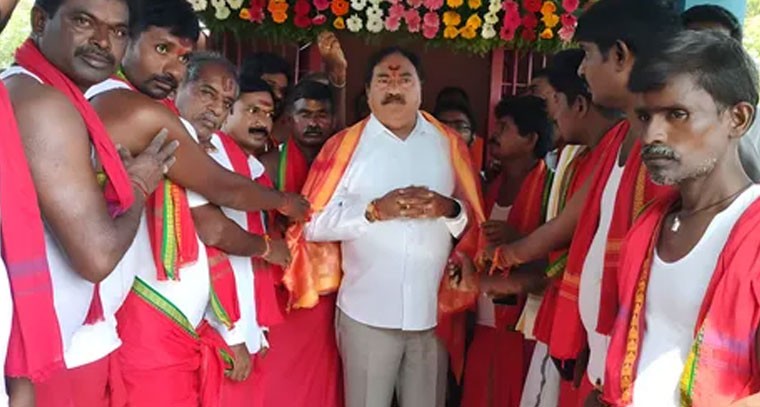 పెద్దమ్మతల్లి విగ్రహ ప్రతిష్ఠాపనలో పాల్గొన్న ఎర్రబెల్లి