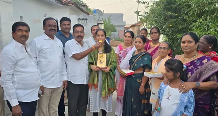 పదవ తరగతిలో 593 మార్కులు సాధించిన కంది మండలం భక్త అల్లూరు గ్రామానికి చెందిన శ్రావణిని వీరశైవ లింగాయత్ ఆధ్వర్యంలో శుక్రవారం ఘనంగా సన్మానించారు. భవిష్యత్తులో ఉన్నత చదువులు చదవాలని ఆకాంక్షించారు. కార్యక్రమంలో జిల్లా అధ్యక్షుడు నర్సింలు, ప్రధాన కార్యదర్శి కొంక రాజేశ్వర్, కోశాధికారి సంతోష్ పాటిల్, యువజన సంఘం అధ్యక్షుడు మల్లికార్జున్ పాల్గొన్నారు.