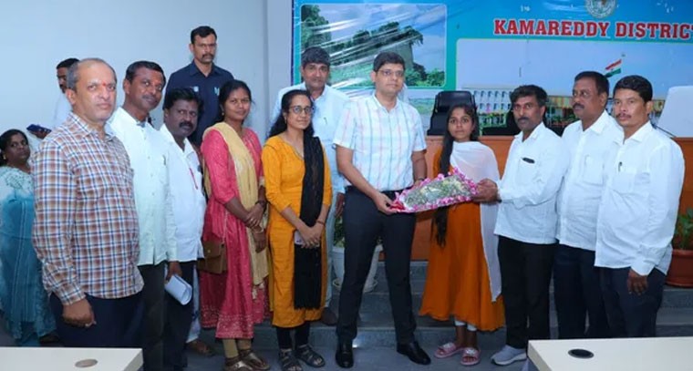 కామారెడ్డి జిల్లా కలెక్టర్ కార్యాలయంలోని సమావేశం మందిరంలో సోమవారం జడ్పీహెచ్ఎస్ కాల్వరాల్ పాఠశాల పదో తరగతి 2024- 25 విద్యా సంవత్సరంలో జి. భావిక 581/600 మార్కులు సాధించి జిల్లా స్థాయిలో అగ్రస్థానంలో నిలిచినందుకు కలెక్టర్ ఆశిష్ సంగ్వాన్ అభినందించారు. ఈ కార్యక్రమంలో డీఈవో రాజు, ఏసిఈ కామారెడ్డి బలరాం, జడ్పిహెచ్ఎస్ కాల్వరాల్ పాఠశాల ప్రధానోపాధ్యాయులు విష్ణువర్ధన్ రెడ్డి, ఉపాధ్యాయ సిబ్బంది పాల్గొన్నారు.