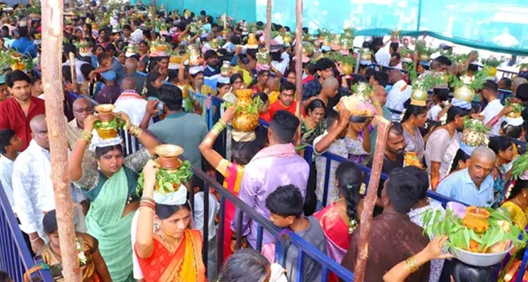 భక్తిశ్రద్ధలతో వేములవాడ శ్రీ రాజరాజేశ్వర స్వామి వారి ఆలయానికి అనుబంధ దేవాలయమైన బద్ది పోచమ్మ ఆలయానికి మంగళవారం సందర్భంగా భక్తులు పోటెత్తారు. అందర్నీ చల్లంగా చూడు తల్లి అంటూ భక్తులు వేడుకున్నారు. అమ్మవారికిష్టమైన బోనాలను నైవేద్యాలు పసుపు కుంకుమలు సమర్పించి సేవలో తరించారు. అధిక సంఖ్యలో భక్తులు రావడంతో ఆలయంతో పాటు పరిసర ప్రాంతాలు సందడిగా మారి కనువిందు చేస్తున్నాయి.