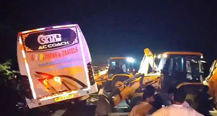 ఘోర రోడ్డుప్రమాదం.. లారీని ఢీకొన్న పెళ్లి బస్సు. నలుగురు మృతి.. 20 మందికిపైగా తీవ్రగాయాలు, ఆరుగురి పరిస్థితి విషమం. వికారాబాద్ జిల్లాలోని పరిగి మండలం రంగాపూర్ సమీపంలోని బీజాపూర్-హైదరాబాద్ జాతీయ రహదారిపై మంగళవారం తెల్లవారుజామున రోడ్డు ప్రమాదం జరిగింది. పోలీసులు తెలిపిన వివరాల ప్రకారం.. రంగారెడ్డి జిల్లా చేవెళ్ల మండలం చెన్వెళ్లి గ్రామానికి చెందిన పలువురు ట్రావెల్స్ బస్సులో పరిగిలో జరిగిన పెళ్లి విందుకు హాజరయ్యారు.స్వగ్రామానికి తిరిగి వెళ్తుండగా రోడ్డుపై నిలిపిన లారీని వీరి బస్సు వెనుక నుంచి ఢీకొట్టింది. ప్రమాదంలో ఒకరు అక్కడికక్కడే మృతి చెందగా.. మరో ముగ్గురు పరిగి ప్రభుత్వాసుపత్రికి తరలించేలోగా ప్రాణాలు కోల్పోయారు. క్షతగాత్రులను మెరుగైన చికిత్స నిమిత్తం హైదరాబాద్ నగరంలోని ఉస్మానియా ఆస్పత్రికి తరలించారు.ఈ ప్రమాద ఘటనలో నలుగురు మృతి చెందగా 20 మందికి పైగా తీవ్రంగా గాయపడ్డారు. ఈ మృతుల్లో ఇద్దరు మహిళలు కూడా ఉన్నారు.వీరంతా రంగారెడ్డి జిల్లా చేవెళ్ల మండలం చెన్వెళ్లి గ్రామానికి చెందిన వారని పోలీసులు గుర్తించారు.