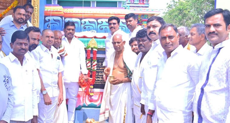పటాన్చెరు శాసనసభ్యులు గూడెం మహిపాల్ రెడ్డి గారు మరోసారి తన దైవభక్తిని చాటుకున్నారు.నియోజకవర్గ వ్యాప్తంగా 200కు పైగా దేవాలయాలను సొంత నిధులతో నిర్మించడంతోపాటు పురాతన ఆలయాలను జీర్ణోధారణ చేస్తున్నారు.తాజాగా.. జిల్లా పటాన్చెరు నియోజకవర్గం అమీన్పూర్ మున్సిపల్ పరిధిలోని జీవి గుట్ట కాలనీలో నూతనంగా నిర్మించిన రాధాకృష్ణ దేవాలయం రాజగోపురం నిర్మాణానికి 27 లక్షల భారీ విరాళం అందించారు. ఆదివారం ఉదయం స్థానిక ఆలయ కమిటీ ప్రతినిధులతో కలిసి రాజగోపురాన్ని ఆయన ప్రారంభించారు. భవిష్యత్తులోనూ దేవాలయం అభివృద్ధికి సంపూర్ణ సహకారం అందిస్తానని హామీ ఇచ్చారు. అనంతరం ఆలయంలో ప్రత్యేక పూజలు నిర్వహించారు. ఆలయ అభివృద్ధికి అండగా నిలుస్తున్న ఎమ్మెల్యే జిఎంఆర్ ను ఆలయ కమిటీ ప్రతినిధులు ఘనంగా సన్మానించారు. ఈ కార్యక్రమంలో రామచంద్రాపురం కార్పోరేటర్ పుష్ప నగేష్, మాజీ కౌన్సిలర్ బాశెట్టి కృష్ణ, నరసింహారెడ్డి, సత్యనారాయణరెడ్డి, శ్రీకాంత్ రెడ్డి, భాస్కర్ రెడ్డి, ఆలయ కమిటీ సభ్యులు పాల్గొన్నారు.