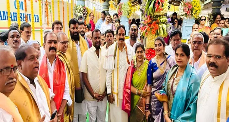 కుత్బుల్లాపూర్ నియోజకవర్గం శేరిలింగంపల్లి, నల్లగండ్ల శ్రీ శ్రీ భ్రమరాంబిక మల్లిఖార్జున స్వామి కళ్యాణోత్సవం సందర్భంగా శేరిలింగంపల్లి కాంగ్రెస్ పార్టీ ఇన్ ఛార్జ్ జగదీశ్వర్ గౌడ్ ప్రత్యేక ఆహ్వానం మేరకు ముఖ్యతిధిగా మాజీ ఎమ్మెల్యే కూన శ్రీశైలం గౌడ్ ఆదివారం హాజరై స్వామివారి కళ్యాణోత్సవంలో పాల్గొన్నారు. అనంతరం కూన శ్రీశైలం గౌడ్ శ్రీ శ్రీ భ్రమరాంభిక మల్లిఖార్జున స్వామివారికి ప్రత్యేక పూజలు చేశారు