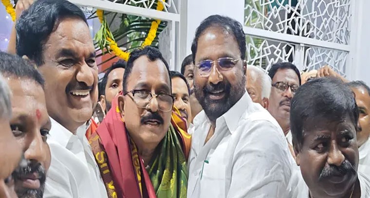 తెలంగాణ ప్రదేశ్ కాంగ్రెస్ పార్టీ క్రమశిక్షణ కమిటీ ఛైర్మెన్ గా నియమితులైన ఎంపీ మల్లు రవిని ఆదివారం హైద్రాబాద్ గాంధీభవన్ లో ఎమ్మెల్యే వాకిటి శ్రీహరి మర్యాదపూర్వకంగా కలిశారు. పూలమాల వేసి శాలువాతో ఘనంగా సన్మానించి శుభాకాంక్షలు తెలిపారు. మల్లు రవి ఛైర్మెన్ గా ఎన్నికై మొదటి సారి గాంధీభవన్ కు రావడంతో నాయకులు, ఎమ్మెల్యేలు, తదితరులు ఘనంగా సన్మానించారు.