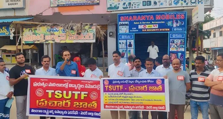 పిల్లలను ప్రభుత్వ పాఠశాలల్లో చేర్పించి నాణ్యమైన విద్యను పొందాలని, ప్రభుత్వ బడులను కాపాడుకోవాలని టిఎస్ యుటిఎఫ్ రాష్ట్ర కోశాధికారి లక్ష్మారెడ్డి పిలుపునిచ్చారు. మెదక్ జిల్లా కమిటీ ఆధ్వర్యంలో నిర్వహించబడుతున్న ప్రచార జాతార నర్సాపూర్ మండలంలోని గ్రామాల్లో నిర్వహించారు. ప్రభుత్వ పాఠశాలలో సుశిక్షితులైన ఉపాధ్యాయులు ఉన్నారని.. విశాలమైన తరగతి గదులు, ఆటస్థలం ఉన్నాయని ప్రభుత్వ పాఠశాలల్లో చేర్పించాలన్నారు.