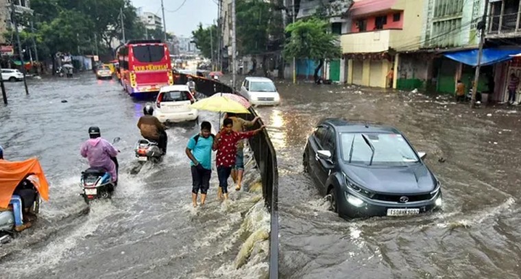 హైదరాబాద్లో గత నాలుగైదు రోజులుగా ఎడతెరిపి లేకుండా వర్షం కురుస్తోంది. ఆదివారం అర్ధరాత్రి కూడా భారీ వర్షం కురవడంతో నగరం తడిసిముద్దైంది. తెలంగాణ వెదర్మ్యాన్ ప్రకారం, సోమవారం మధ్యాహ్నం వరకు పొడి వాతావరణం ఉండి, మధ్యాహ్నం 2 గంటల తర్వాత మోస్తరు నుంచి భారీ వర్షం కురిసే అవకాశం ఉంది. ఈ వర్షం అర్ధరాత్రి వరకు కొనసాగి, పలు ప్రాంతాల్లో 25-55 మి.మీ. వర్షపాతం నమోదయ్యే అవకాశం ఉందని, ప్రజలు అప్రమత్తంగా ఉండాలని అధికారులు సూచించారు.