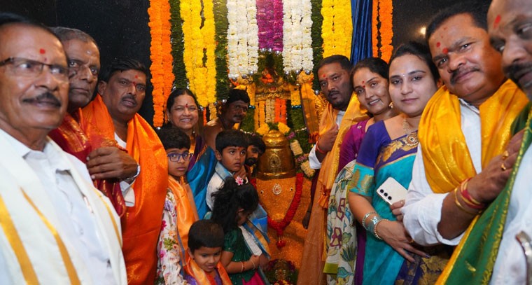 పటాన్చెరు నియోజకవర్గం పటాన్చెరు మండల పరిధిలోని రుద్రారంలో గల గణేష్ గడ్డ శ్రీ సిద్ధి వినాయక దేవాలయం దర్శించుకుని స్వామివారికి ప్రత్యేక పూజలు నిర్వహించిన పటాన్చెరు శాసనసభ్యులు శ్రీ గూడెం మహిపాల్ రెడ్డి దంపతులు. ఆలయ అర్చకులు పూర్ణకుంభంతో ఘన స్వాగతం పలికారు.అనంతరం ఆలయ ధర్మకర్తల మండలి సభ్యులు ఎమ్మెల్యే జిఎంఆర్ దంపతులను ఘనంగా సన్మానించారు. విఘ్నాలను తొలగించి విజయపథంలో నడిపించే విఘ్నేశ్వరుడి కరుణా కటాక్షాలు ప్రతి ఒక్కరిపై ఉండాలని ఆ విఘ్నేశ్వరుడిని ప్రార్థించినట్లు ఆయన తెలిపారు.పటాన్చెరు నియోజకవర్గ ప్రజలందరికీ వినాయక చవితి శుభాకాంక్షలు తెలియజేశారు. నేటి నుండి తొమ్మిది రోజులపాటు భక్తిశ్రద్ధలతో వినాయక నవరాత్రి ఉత్సవాలు శాంతియుత వాతావరణంలో నిర్వహించుకోవాలని విజ్ఞప్తి చేశారు.