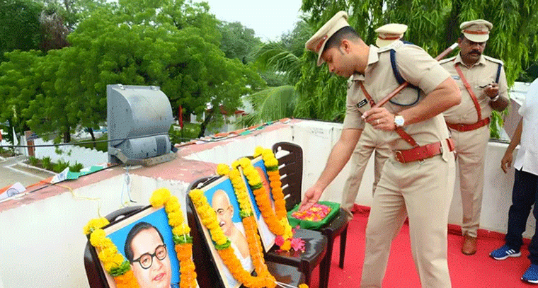 తెలంగాణ ప్రజా పాలన దినోత్సవం సందర్భంగా, జిల్లా పోలీసు కార్యాలయంలో జిల్లా ఎస్పీ శరత్ చంద్ర పవార్ ఐపీఎస్ జాతీయ జెండాను ఆవిష్కరించి, సిబ్బందితో కలిసి జాతీయ గీతాలాపన చేశారు. ఈ సందర్భంగా ఆయన పోలీసు అధికారులు, సిబ్బందితో పాటు జిల్లా ప్రజలందరికీ శుభాకాంక్షలు తెలిపారు. ఈ కార్యక్రమంలో అడిషనల్ ఎస్పీ రమేష్, ఎస్బీ డీఎస్పీ మల్లారెడ్డి, డీఎస్పీ శివరాం రెడ్డి, ఏ.ఆర్ డీఎస్పీ శ్రీనివాసులు, సీఐలు, ఆర్.ఐలు, ఎస్.ఐలు మరియు ఇతర సిబ్బంది పాల్గొన్నారు.
