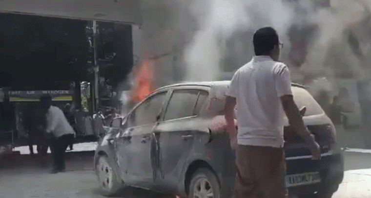 హైదరాబాద్లోని పంజాగుట్ట పెట్రోల్ బంకులో సోమవారం పెట్రోల్ కొట్టించడానికి వచ్చిన కారులో అగ్నిప్రమాదం చోటుచేసుకుంది. కారులో ఇద్దరు వ్యక్తులు ఉండగా, మంటలు చెలరేగడంతో పెట్రోల్ బంకు సిబ్బంది, వాహనదారులు భయాందోళనకు గురయ్యారు. వెంటనే అప్రమత్తమైన సిబ్బంది అగ్నిమాపక యంత్రాలతో మంటలను ఆర్పేశారు. దీంతో పెట్రోల్ బంకుకు పెను ప్రమాదం తప్పింది. అనంతరం మంటలు ఆర్పిన కారును బంకు నుండి బయటకు తీసుకెళ్లారు. ఈ ఘటన ఎర్రమంజిల్ లోని పెట్రోల్ బంకులో జరిగింది.