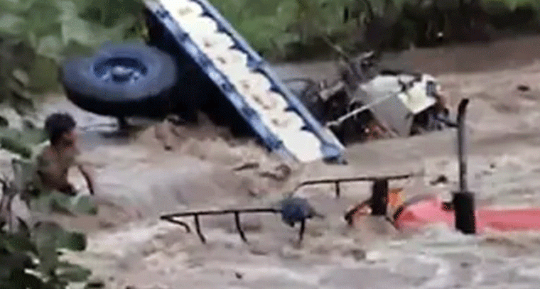 ఆదిలాబాద్ జిల్లాలో కురుస్తున్న భారీ వర్షాల కారణంగా వాగులు, వంకలు పొంగిపొర్లుతున్నాయి. సోమవారం రూరల్ మండలంలోని బండ గూడ గ్రామ శివారులో వాగు ఉప్పొంగడంతో మూడు ట్రాక్టర్లు బోల్తా పడ్డాయి. వాగు దాటుతుండగా ఒక్కసారిగా వరద ఉధృతి పెరగడంతో ఈ ప్రమాదం జరిగింది. అదృష్టవశాత్తు, డ్రైవర్లు, కూలీలు వెంటనే అప్రమత్తమై సురక్షితంగా బయటపడటంతో పెను ప్రమాదం తప్పింది.