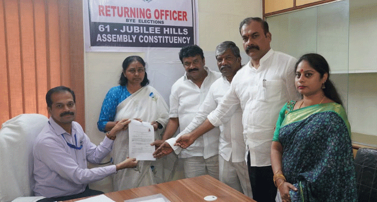 TG: జూబ్లీహిల్స్ ఉప ఎన్నికకు బీఆర్ఎస్ పార్టీ ఎమ్మెల్యే అభ్యర్థి మాగంటి సునీత మొదటి సెట్ నామినేషన్ దాఖలు చేశారు. బుధవారం షేక్పేట్ తహసీల్దార్ కార్యాలయానికి చేరుకుని నామినేషన్ సమర్పించారు. ఆమెతో పాటు కార్యాలయానికి వెళ్లిన బీఆర్ఎస్ వర్కింగ్ ప్రెసిడెంట్ కేటీఆర్, తలసాని శ్రీనివాస్ యాదవ్, పద్మారావు గౌడ్, బీఆర్ఎస్ నాయకులు విష్ణువర్ధన్ రెడ్డి వెళ్లారు. కాగా నామినేషన్ వేయడానికి ముందు జూబ్లీహిల్స్ పెద్దమ్మగుడిలో మాగంటి సునీత గోపినాథ్, మాగంటి కుటుంబ సభ్యులు, మాజీ ఎమ్మెల్యే విష్ణువర్ధన్ రెడ్డి ప్రత్యేక పూజలు చేశారు.