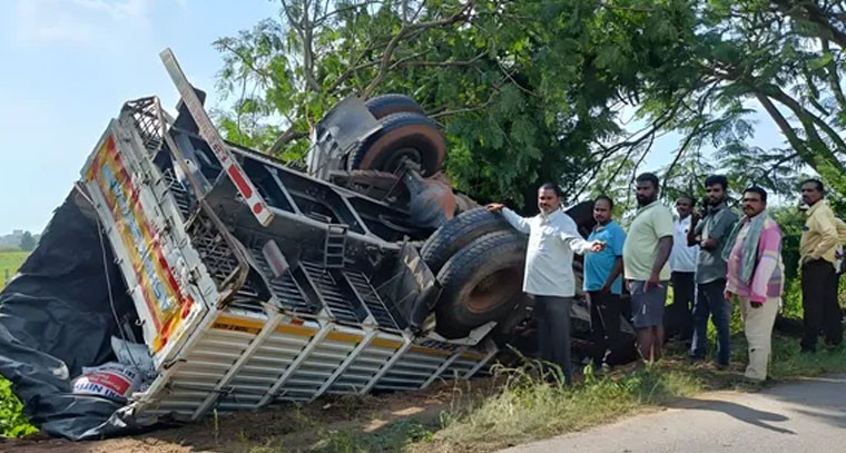 రోడ్డు ప్రమాదం.. డీసీఎం బోల్తా.. సహాయక చర్యలు