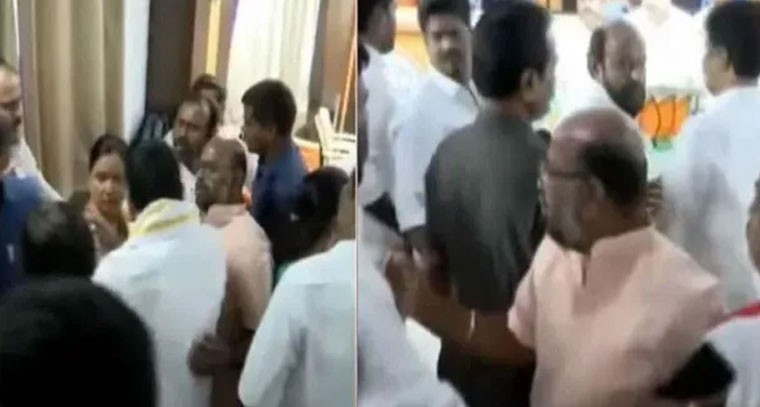 హైదరాబాద్‌లోని బీజేపీ రాష్ట్ర కార్యాలయంలో ఫొటోల వివాదం కారణంగా బీజేపీ, బీసీ సంఘాల నేతల మధ్య తీవ్ర వాగ్వాదం చోటుచేసుకుంది. ఈ ఘర్షణలో ఇరువర్గాల నేతలు ఒకరిపై ఒకరు దాడి చేసుకున్నారు. బీజేపీ రాష్ట్ర అధ్యక్షుడు రాంచందర్‌రావు, ఎంపీ ఆర్‌.కృష్ణయ్య జోక్యం చేసుకున్నా పరిస్థితి అదుపులోకి రాలేదు. ఈ ఘటనకు సంబంధించిన వీడియో ప్రస్తుతం సోషల్‌మీడియాలో వైరల్‌గా మారింది.