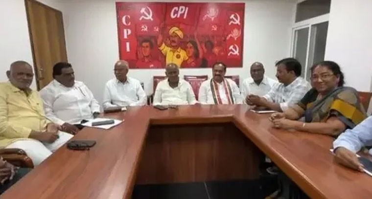 TG: జూబ్లీహిల్స్ ఉప ఎన్నికలో కాంగ్రెస్ అభ్యర్థికి సీపీఐ సంపూర్ణ మద్దతు ప్రకటించింది. శుక్రవారం టీపీసీసీ చీఫ్ మహేశ్కుమార్ గౌడ్, సీపీఐ రాష్ట్ర కార్యదర్శి కూనంనేని సాంబశివరావు, జాతీయ కార్యదర్శి పల్లా వెంకటరెడ్డితో సహా పలువురు సీపీఐ నాయకులను హైదరాబాద్లోని సీపీఐ రాష్ట్ర కార్యాలయంలో కలిసి మద్దతు కోరారు. ఈ సందర్భంగా సీపీఐ రాష్ట్ర కార్యదర్శి కూనంనేని సాంబశివరావు మాట్లాడుతూ, జూబ్లీహిల్స్ ఉప ఎన్నికలలో కాంగ్రెస్ అభ్యర్థికి తమ పార్టీ సంపూర్ణ మద్దతు అందిస్తుందని ఒక ప్రకటనలో తెలిపారు.
